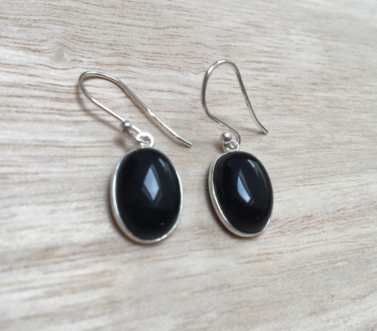 Black onyx sterling silver earrings Oval