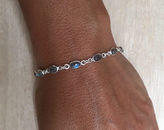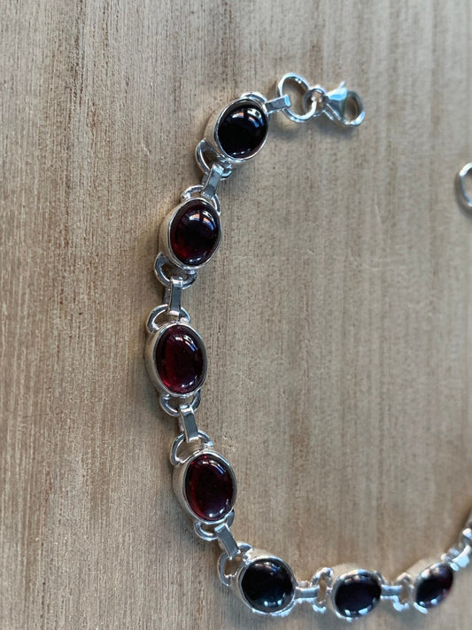 Garnet sterling silver bracelet, Garnet bracelet Oval