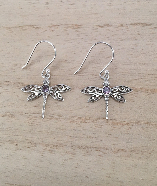 Sterling Silver Dragonfly earrings with semi precious stones,