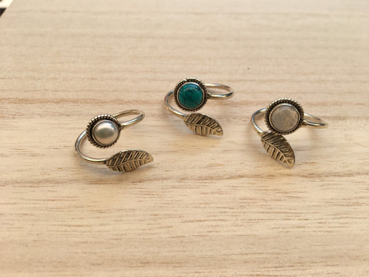 Leaf sterling silver ring, Adjustable leaf sterling silver ring, Gift for her, Leaf moonstone ring, Leaf turquoise ring, Boho silver ring,