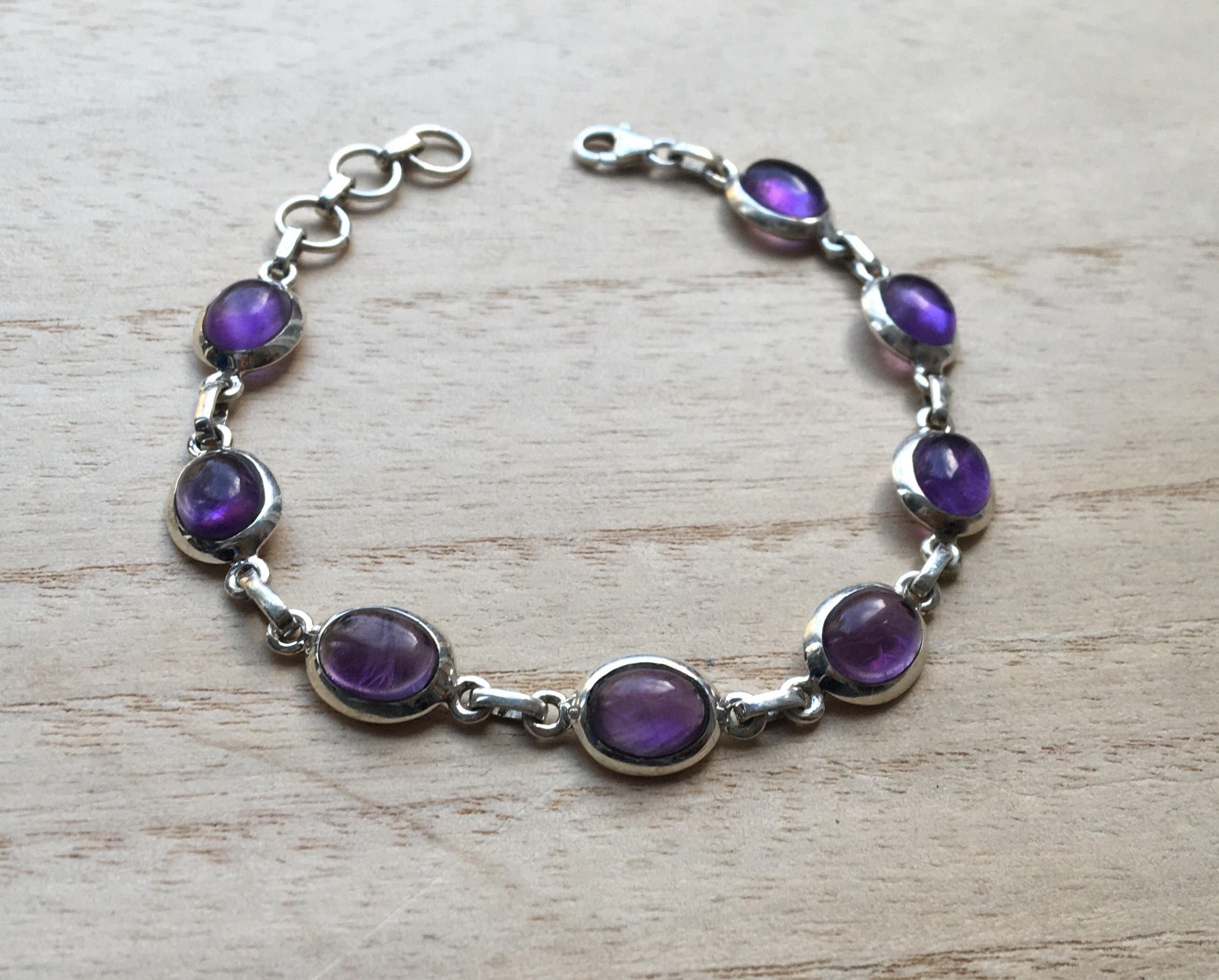 Lovely amethyst and sterling silver bracelet. The bracelet has 8 individual amethyst in an oval shape.