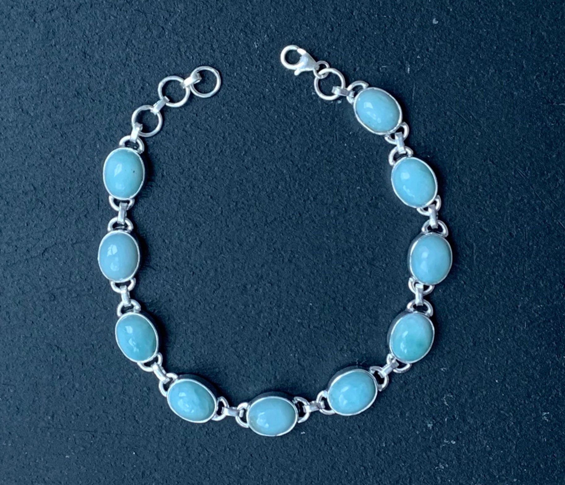 Lovely Larimar and sterling silver bracelet. The bracelet has 10 individual larimar stones in an oval shape.