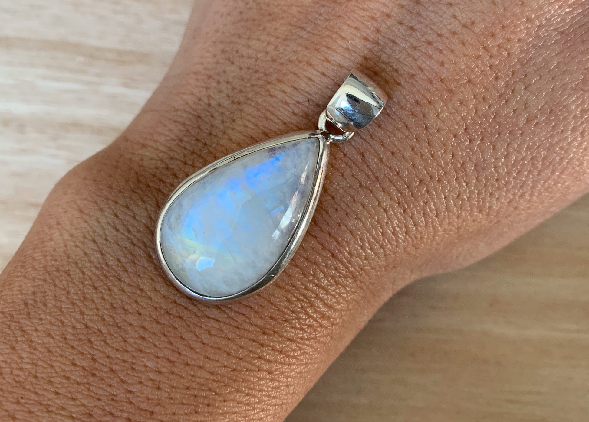 Lovely moonstone and sterling silver pendant in a Teardrop shape.