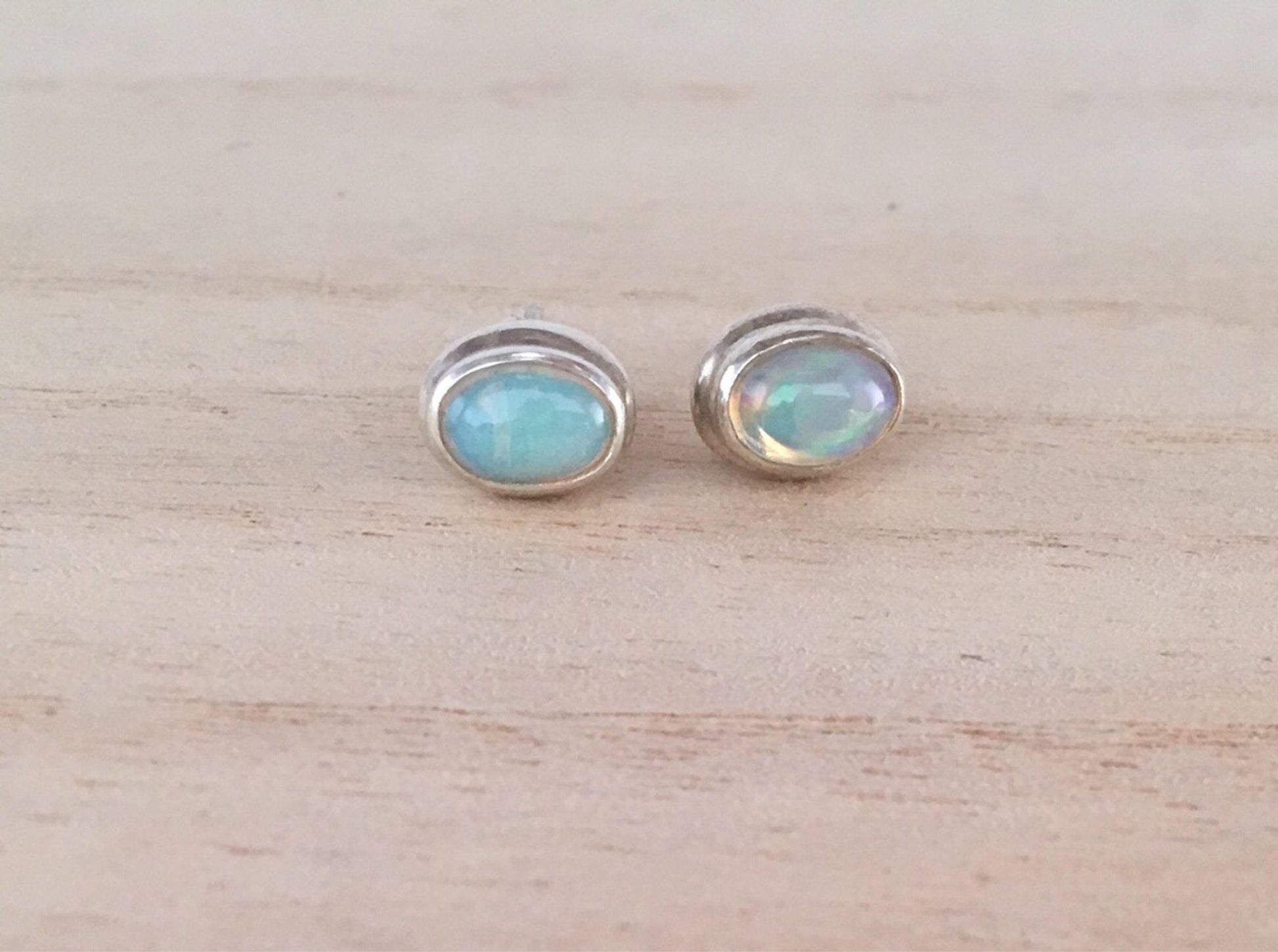 Opal stud silver earrings, Oval stud sterling silver opal earrings, Real opal Earrings, Gift for her, Ethiopian opal studs earrings